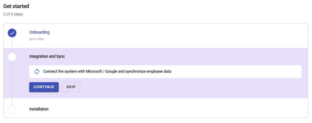 - Adding employees – you can choose between integration with Google Workspace or Microsoft 365/Exchange Online, and for organizations with restrictive IT policies, import from a CSV file is available.