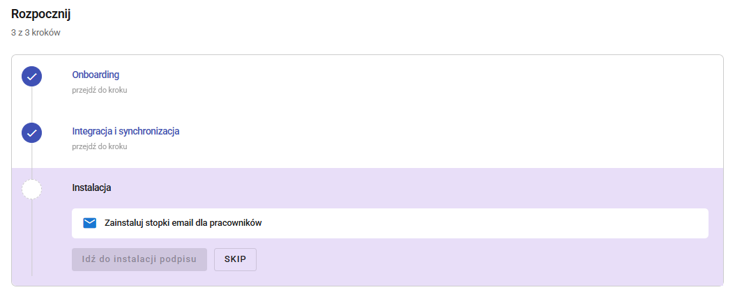 - Instalacja podpisu – ostatni krok, który uruchamia spersonalizowane podpisy email html dla całej organizacji.